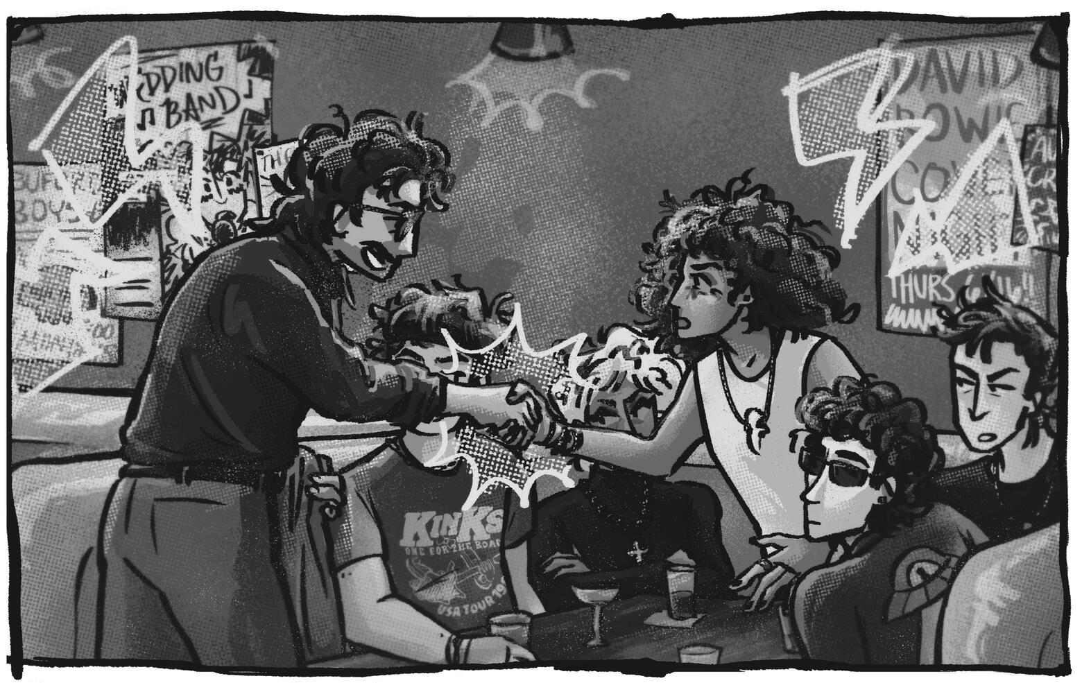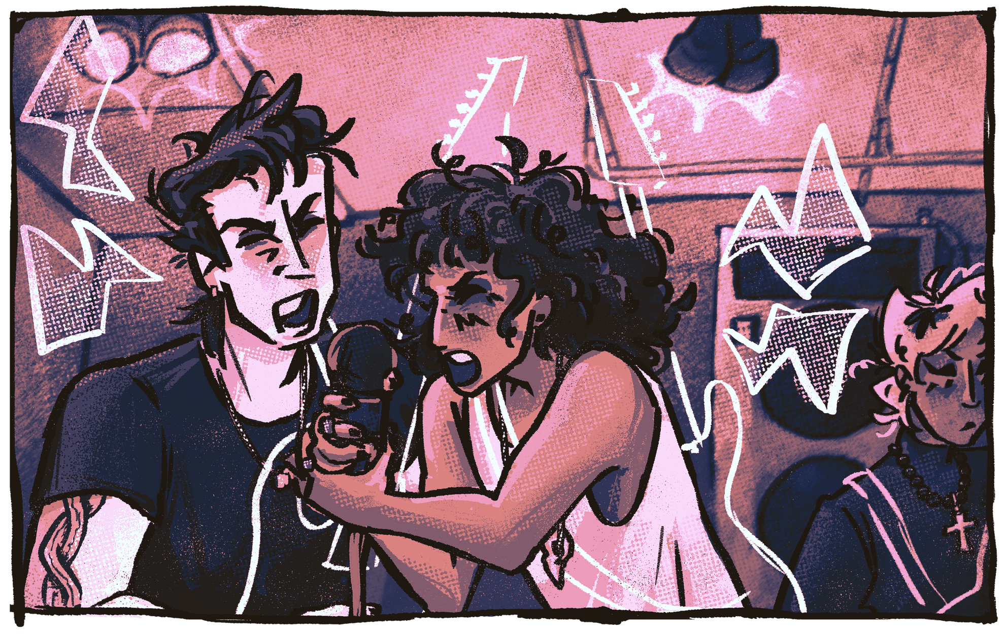 NAILBATTERY* is Tommy Hatfield, a twenty-three year old artist-kinda-thing from South Florida. He graduated from Maryland Institute College of Art in the spring of 2024 with a B.F.A. in Illustration. Intermittently he enjoys writing, illustrating, and printmaking (when he can get his hands on the resources). He spends most of his time imagining stories and characters, and some of his leftover time attempting to bring them to life through narrative projects. And maybe through alchemy or arcane magic or something, one day...